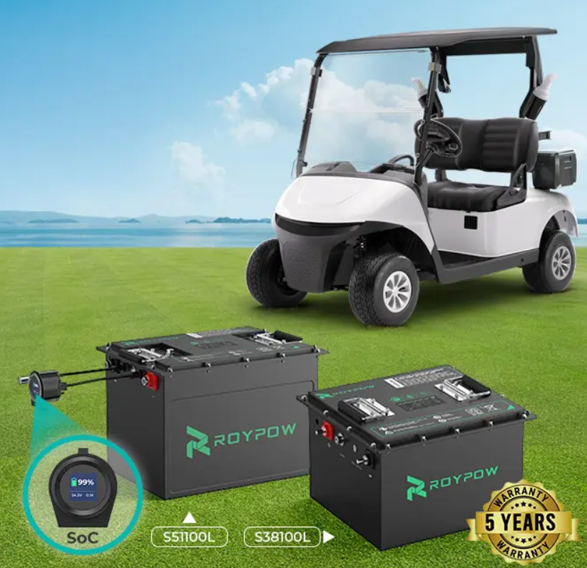ROYPOW has set new standards in golf cart battery technology with its innovative lithium golf cart battery systems. The company’s advanced LiFePO4 batteries deliver superior power, reliability, and safety for golf carts and utility vehicles. With voltage options ranging from 36V to 72V and capacities up to 100Ah, ROYPOW golf cart lithium batteries are engineered to meet the demands of both recreational and commercial users.